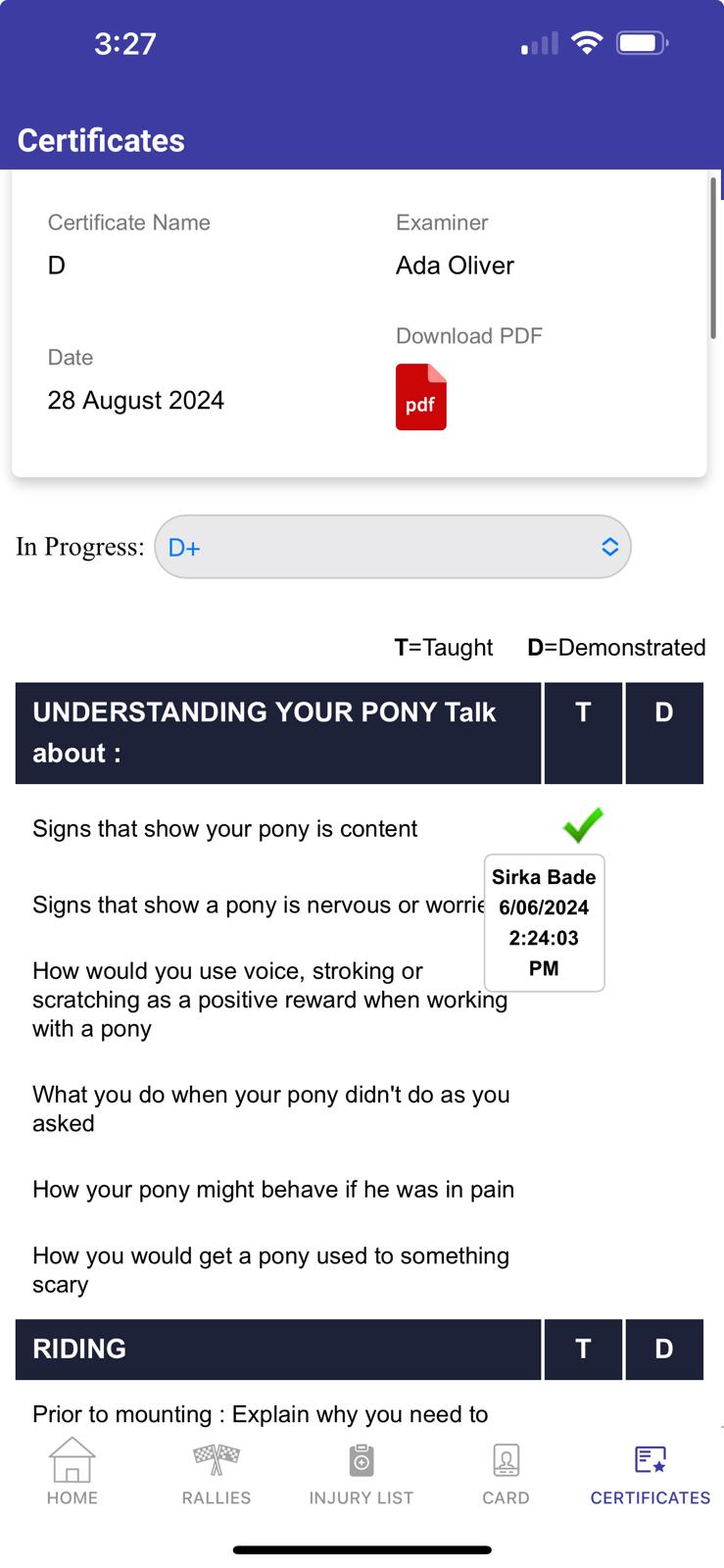 Riding members can view their rallies and certificates etc., on their computer or the NZPCA App on their phone.
